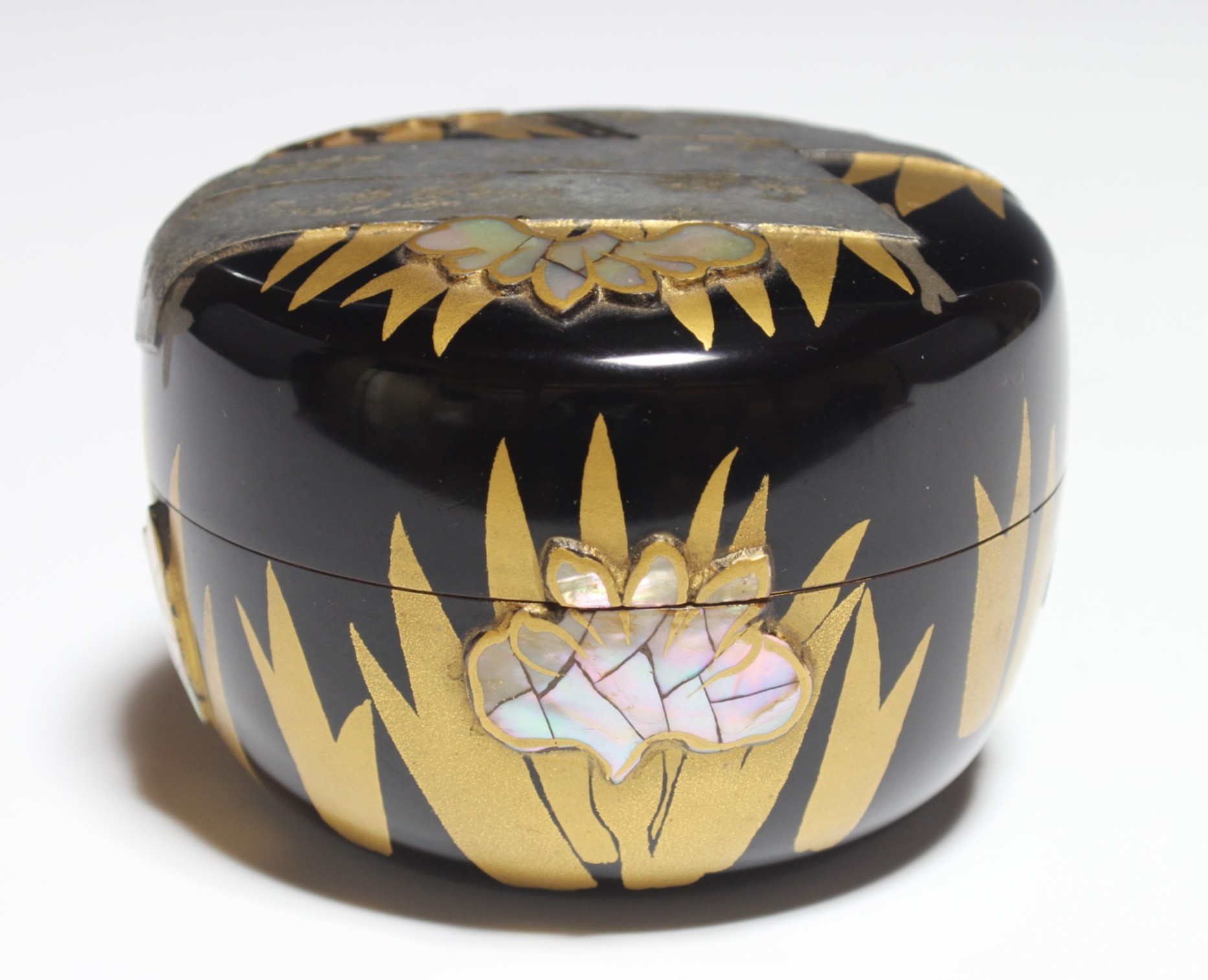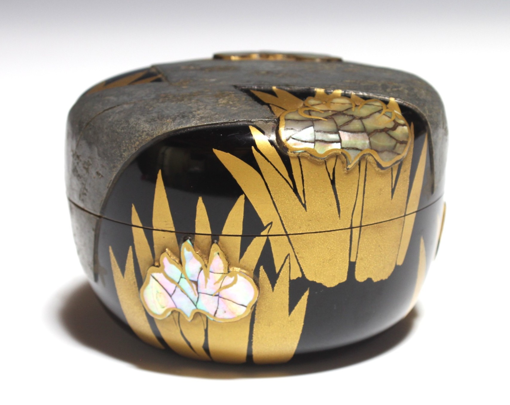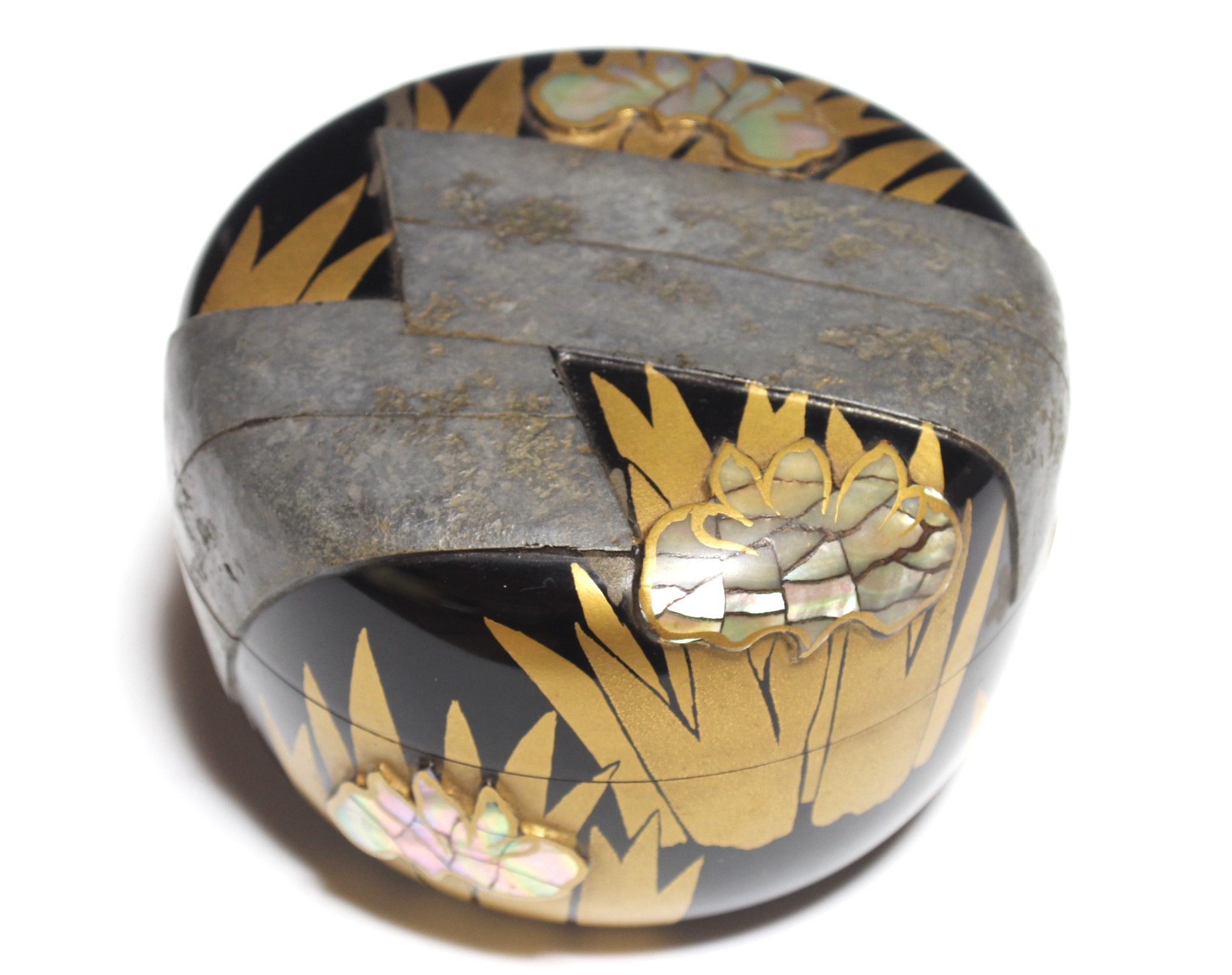 二代 鈴木表朔 杜若蒔絵平棗 鵬雲斎御書付 the 2nd suzuki, hyosaku drizzling rain big tea container