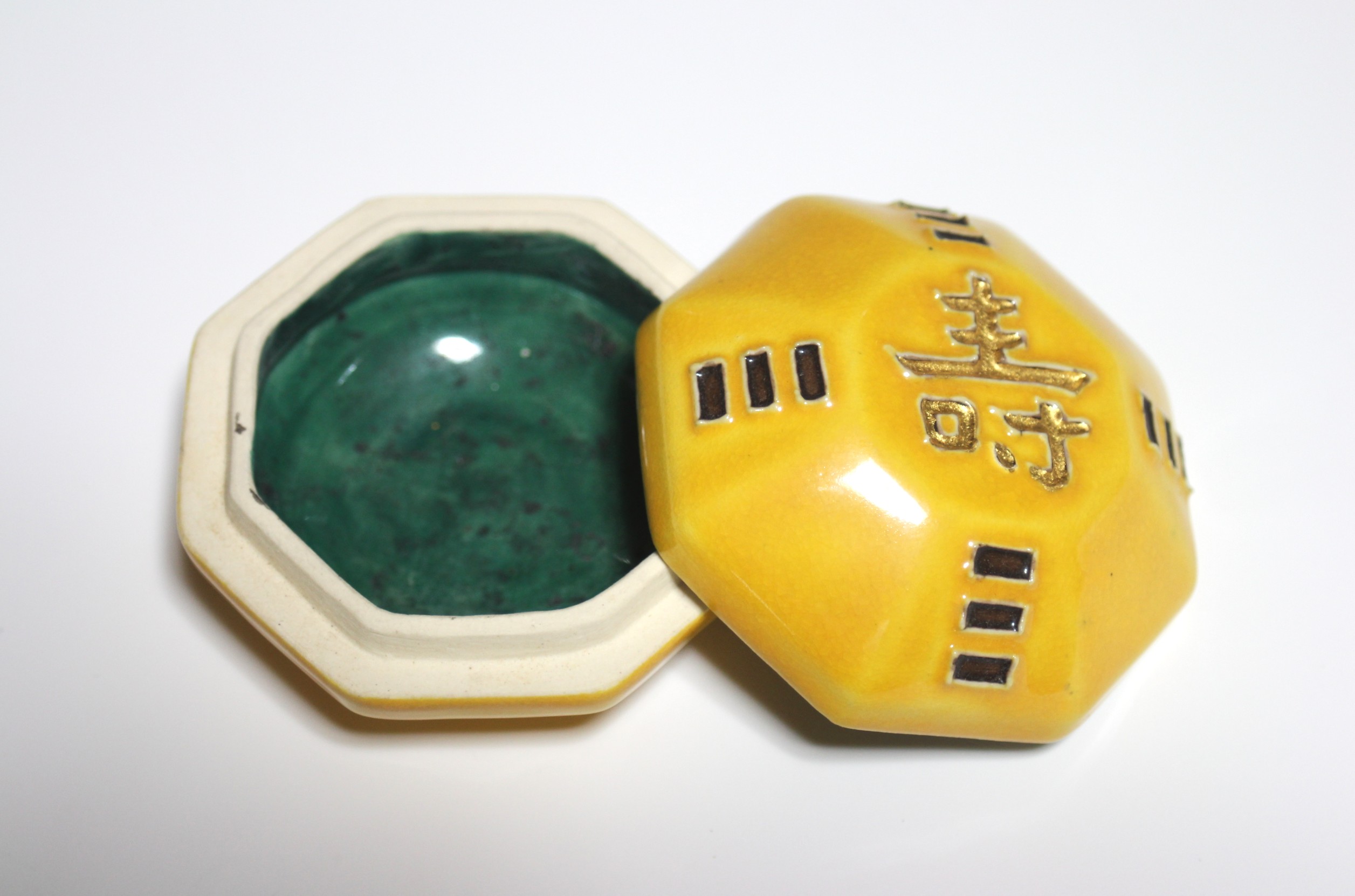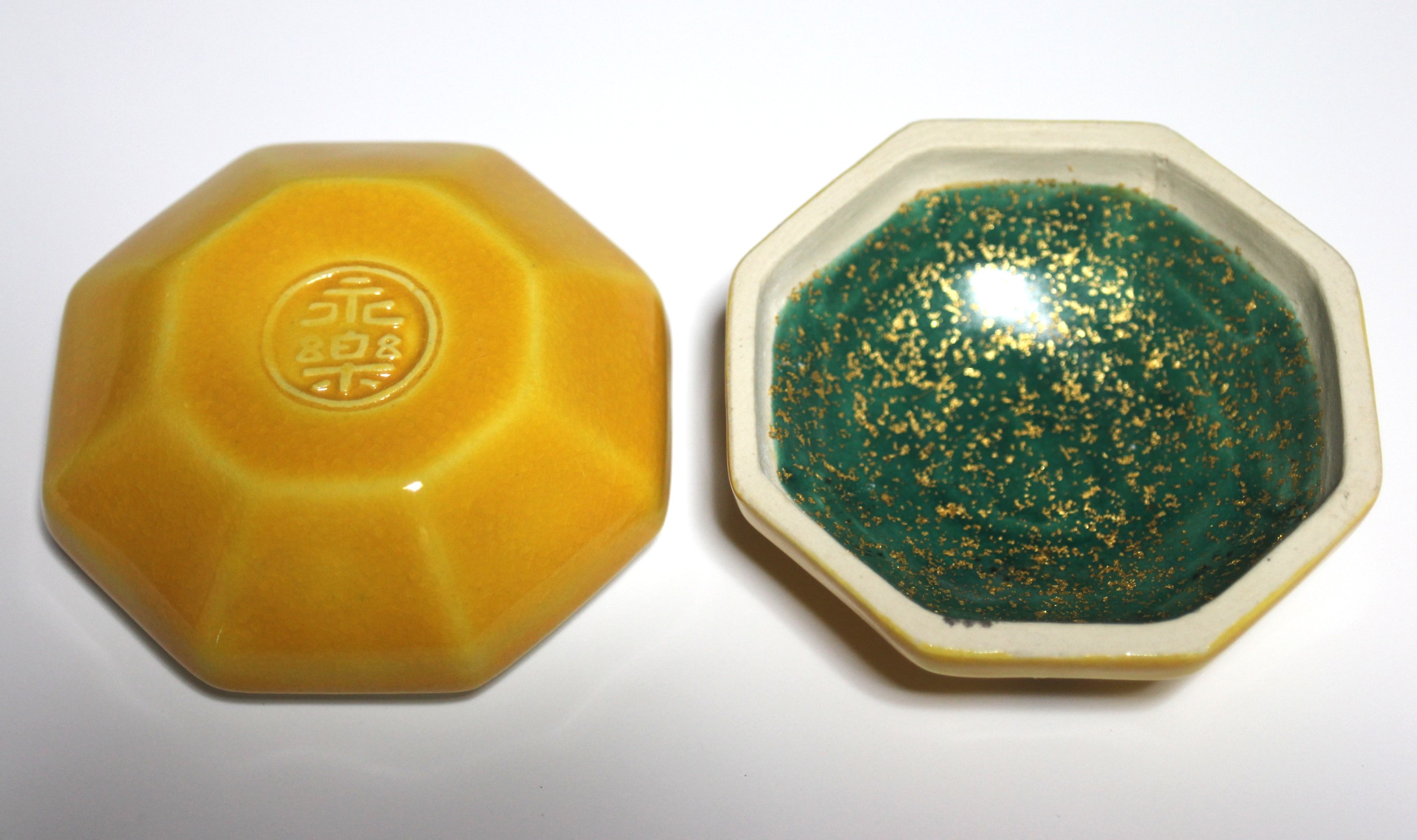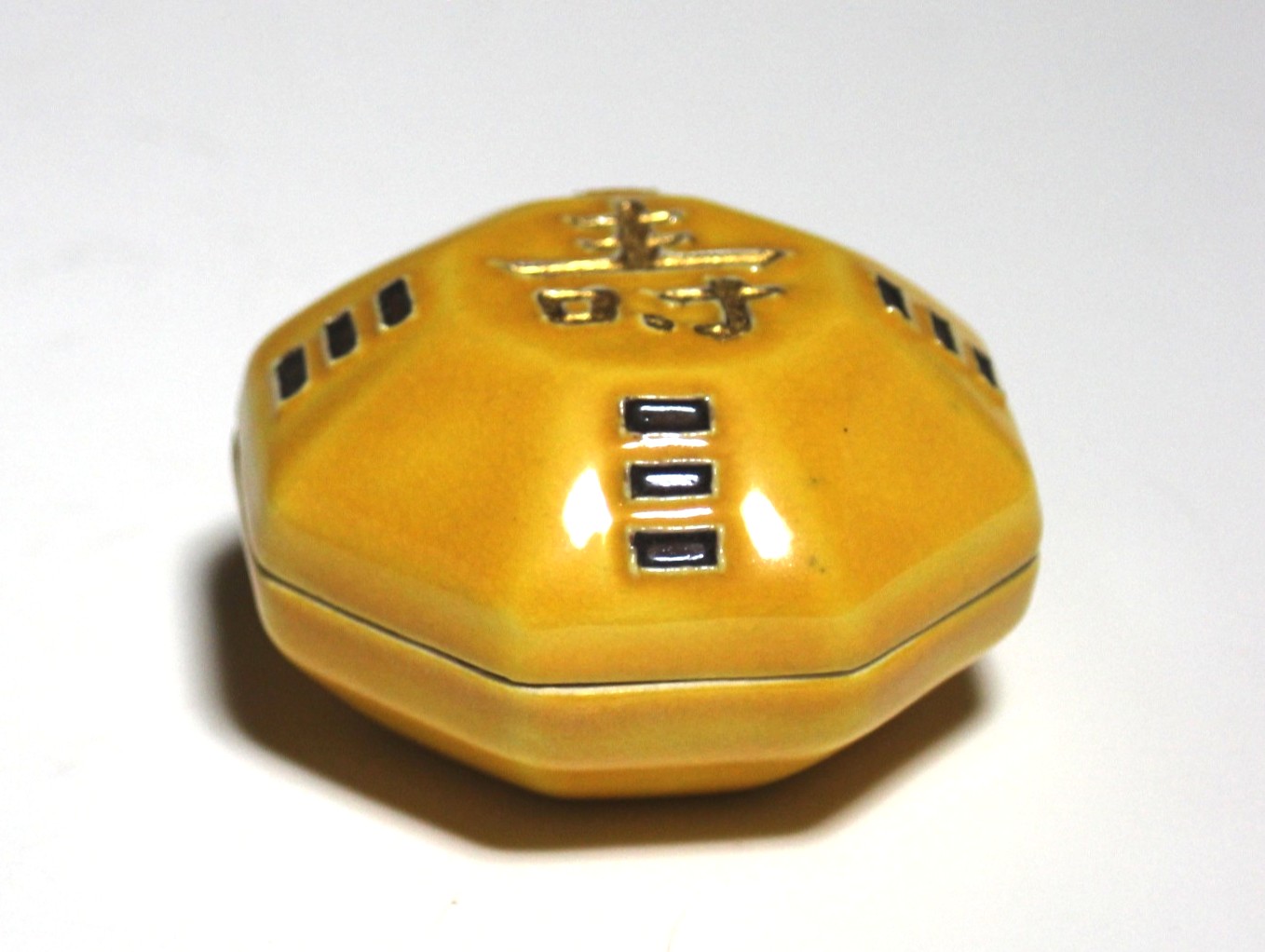 永楽即全 黄交趾 寅香合 eiraku, sokuzen yellow-cochin tiger incense case
