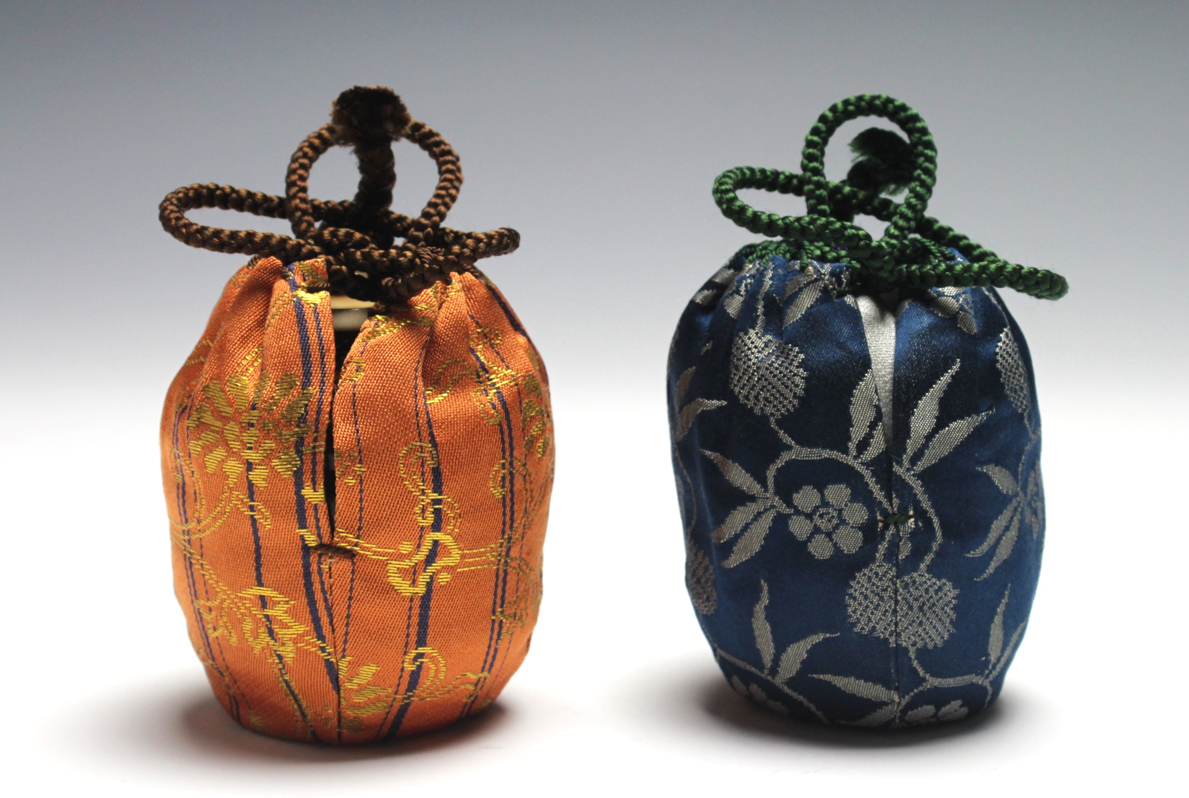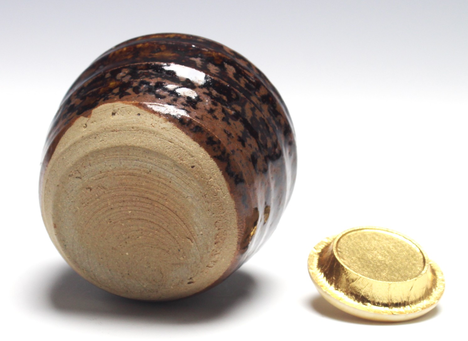 8.4㎝径×7.0㎝高 仕覆:宝尽二重蔓牡丹金襴、金襴笹蔓緞子