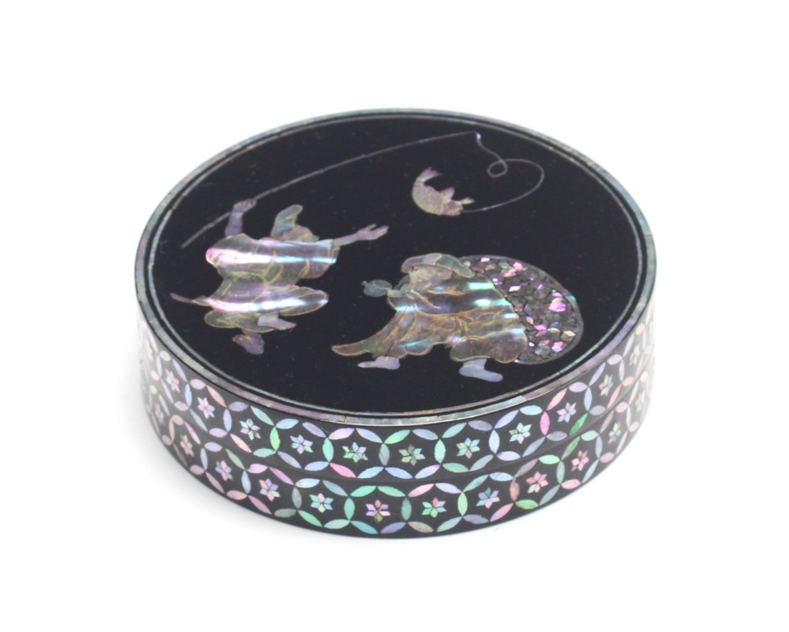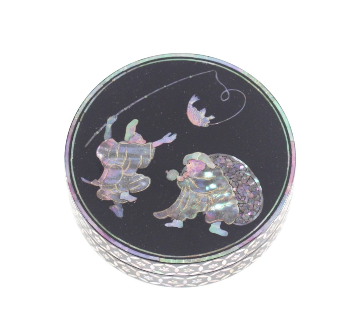 兼松清風 青貝二福人香合 鵬雲斎御書付 kanematsu, seifu two fortunate gods incense case
