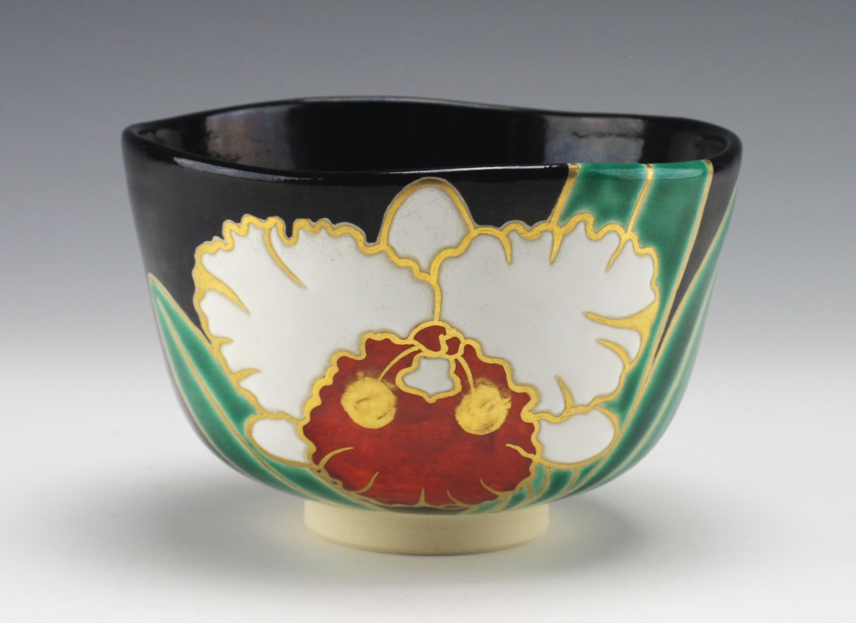 永楽即全 仁清写蘭茶碗 即中斎御書付 eiraku, sokuzen ninse-style orchid bowl