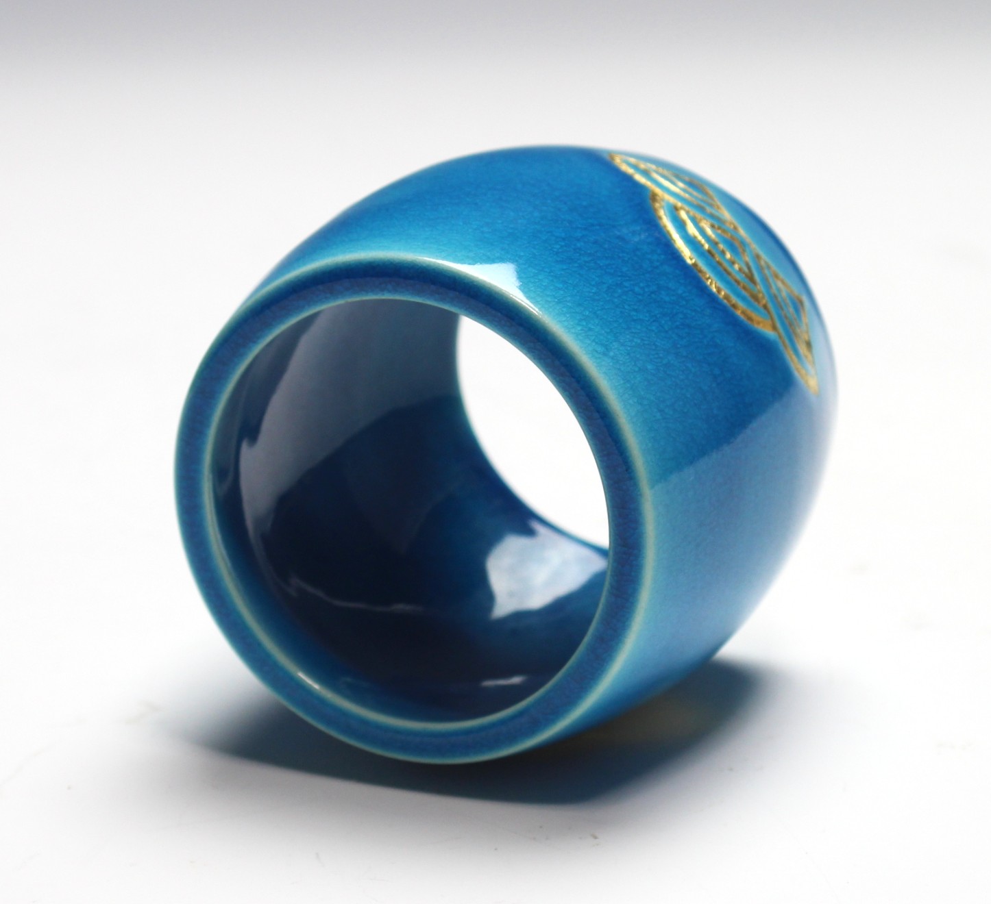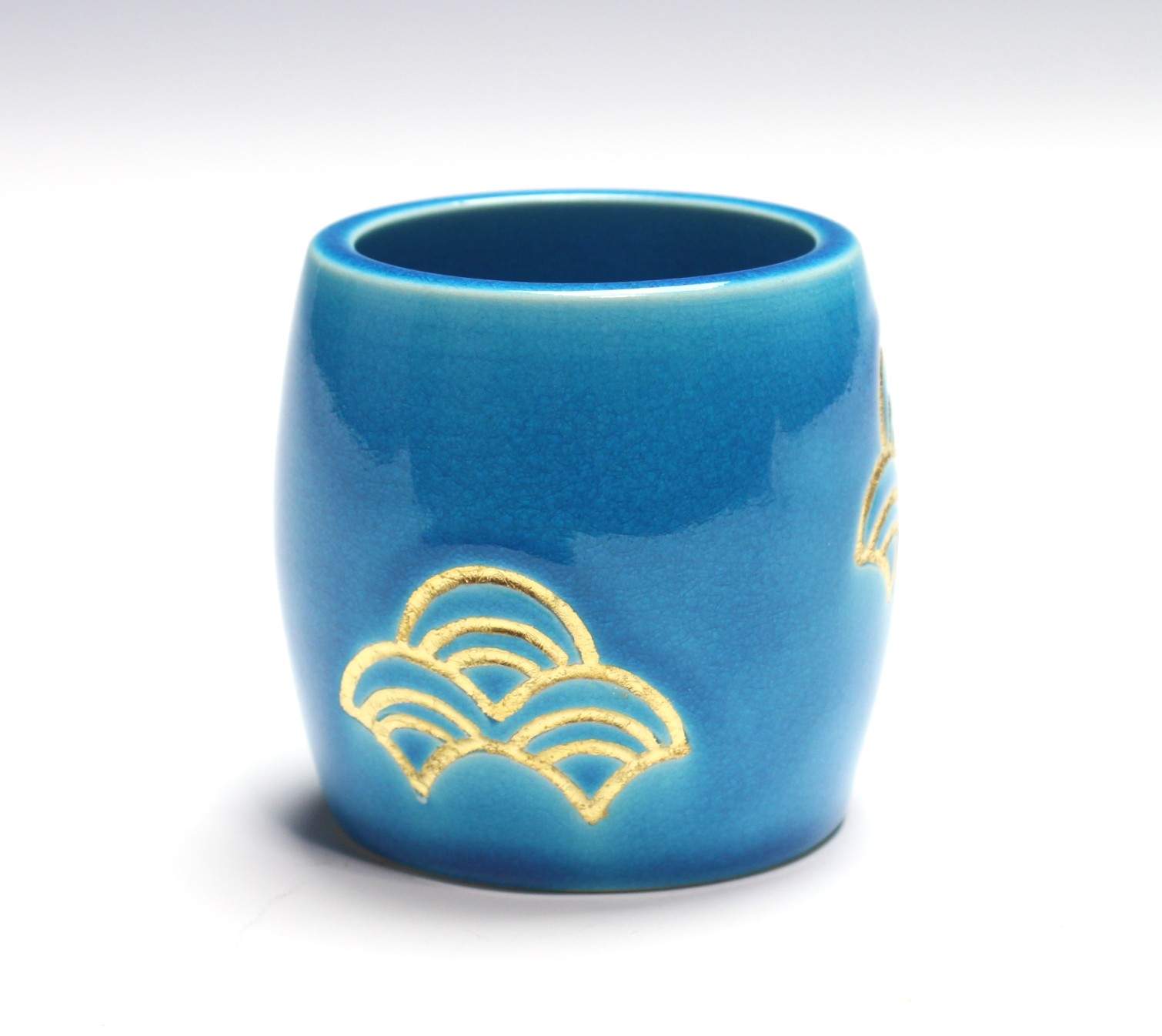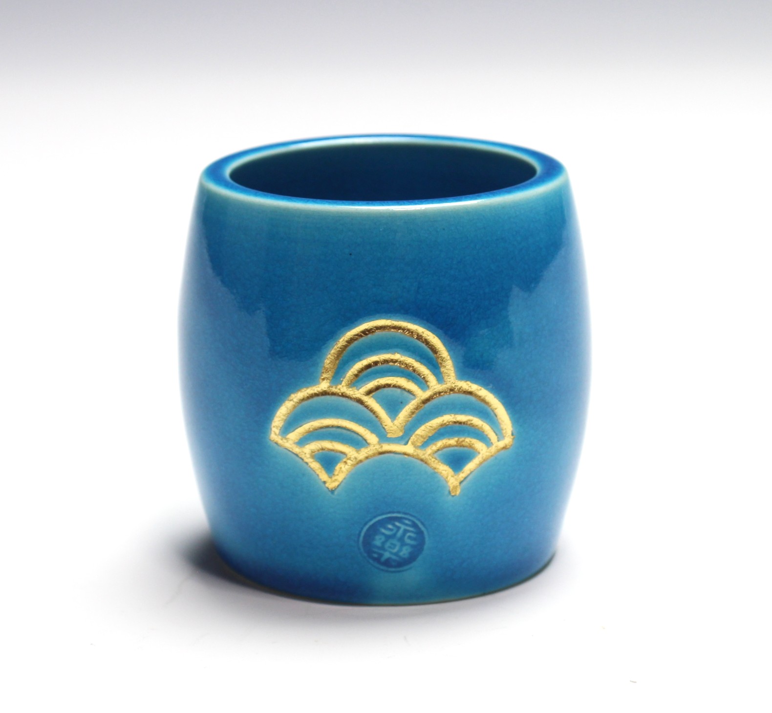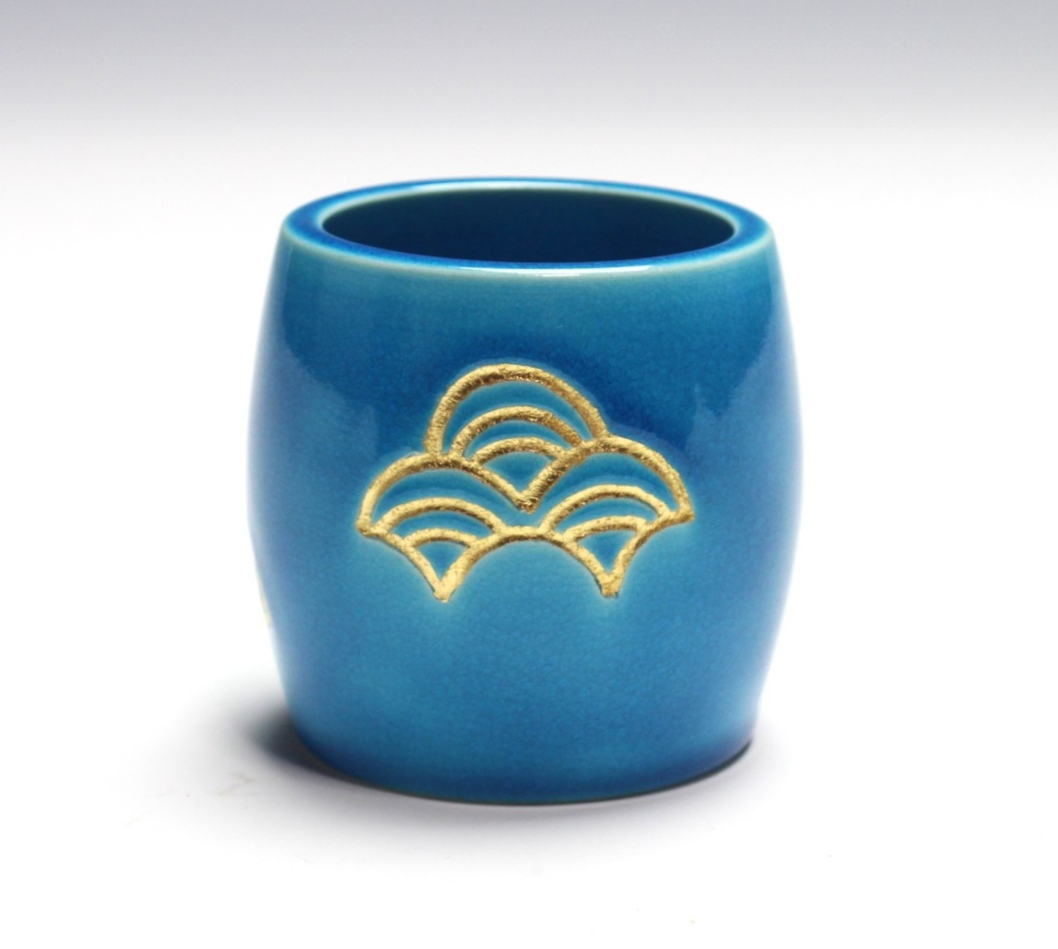 永楽即全 浅黄交趾青海波蓋置 eiraku, sokuzen blue cochin lid rest with wave pattern
