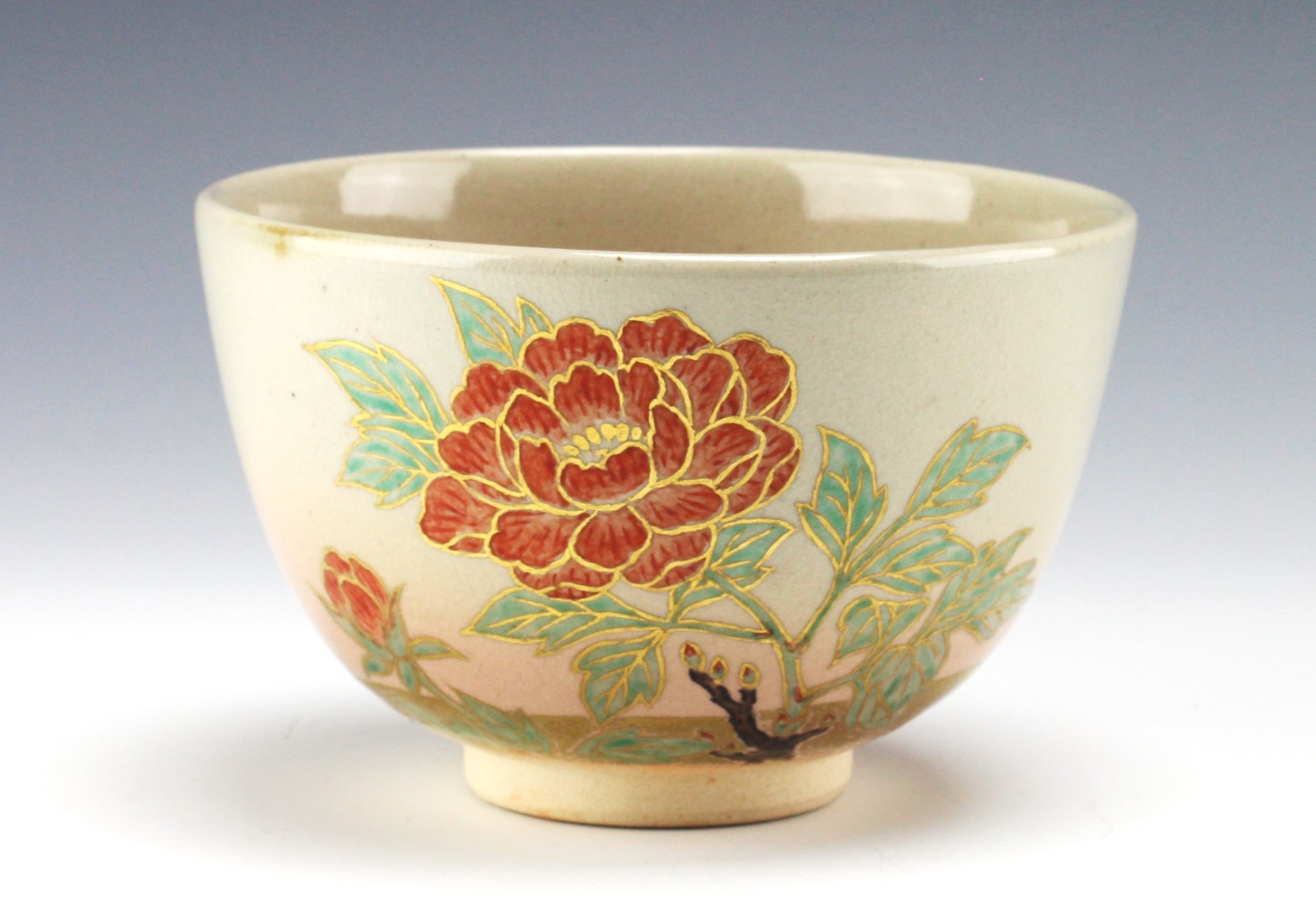 初代 和田桐山 色絵牡丹茶碗 the 1st wada, tozan coloured peony bowl