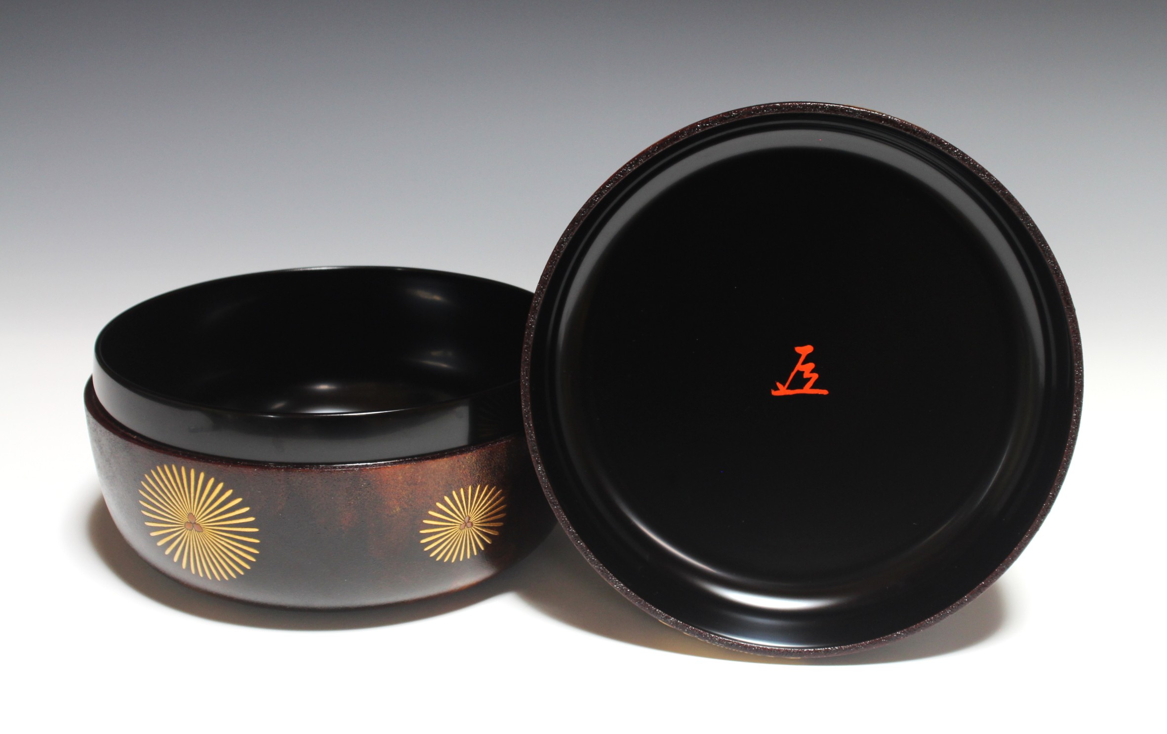 五代 川端近左 唐松蒔絵錆塗食籠 猶有斎御書付 the 5th kawabata, kinsa japanese larch sweets container
