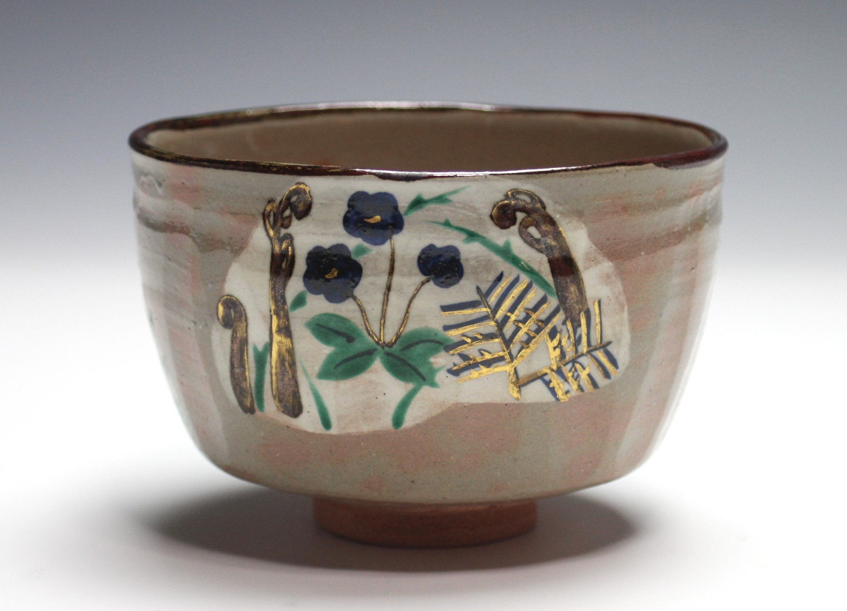 永楽即全 乾山写春草茶碗 eiraku, sokuzen kenzan-style spring plants bowl