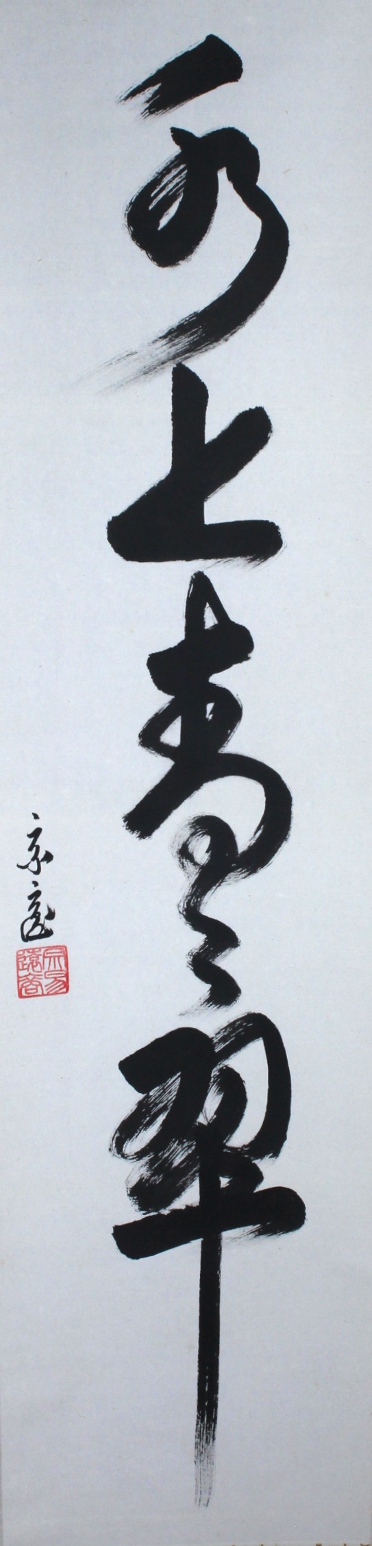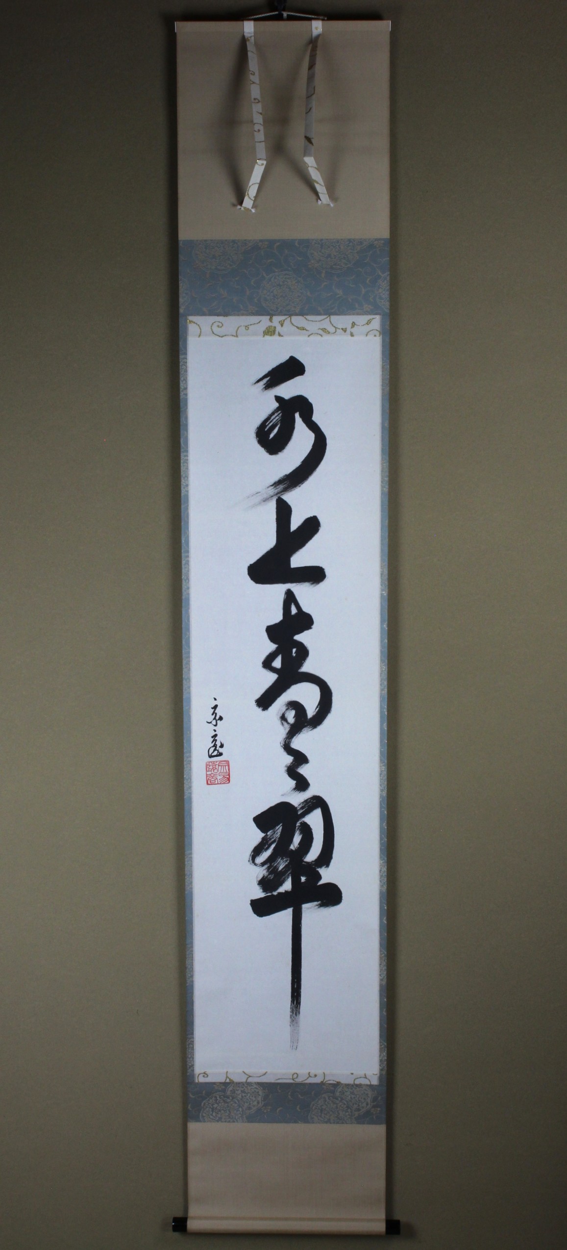 裏千家 十五代 鵬雲斎 一行幅「水上青々翠」 urasenke the 15th sen, genshitsu hounsai "suijo seiseitaru midori"