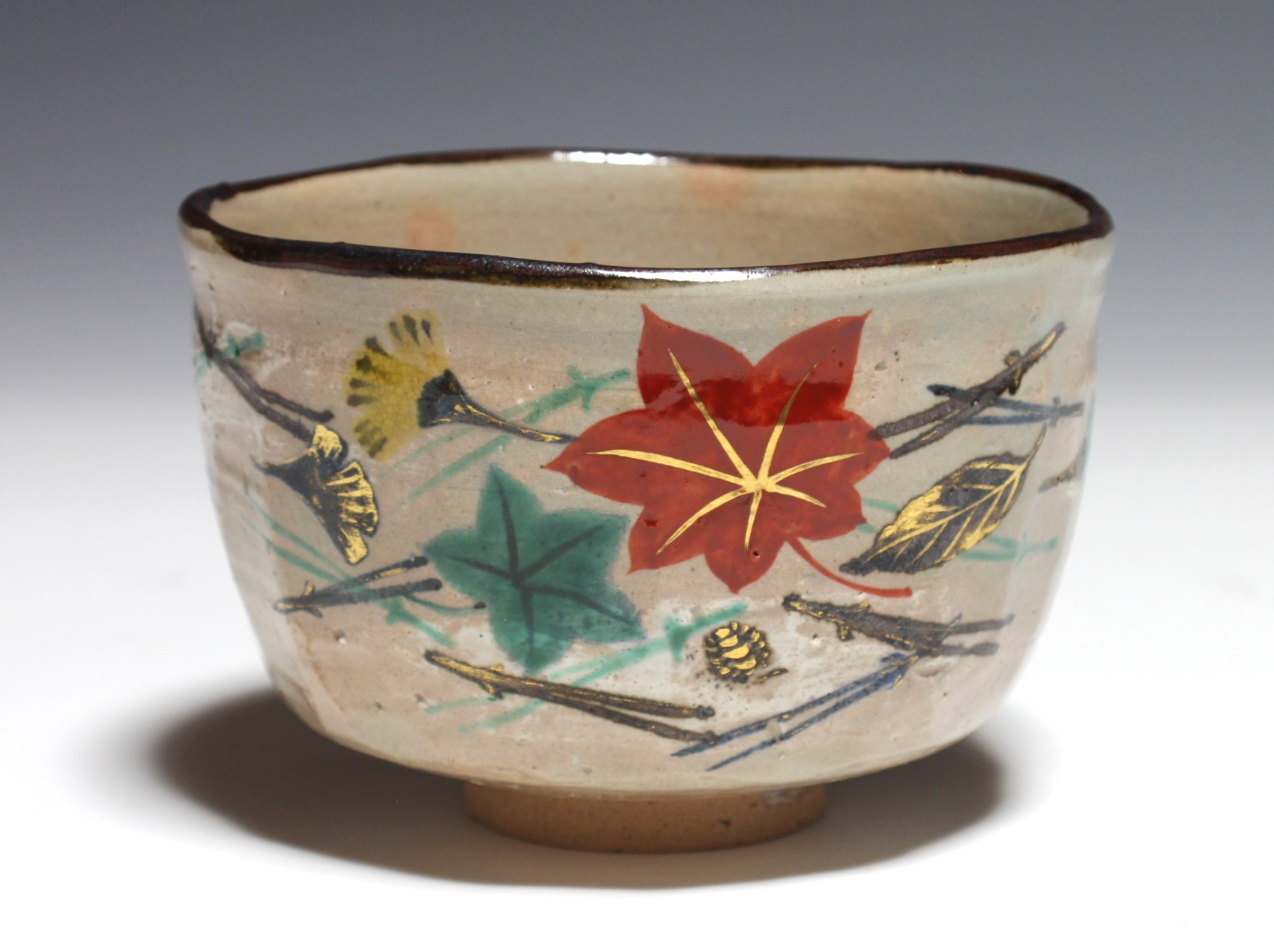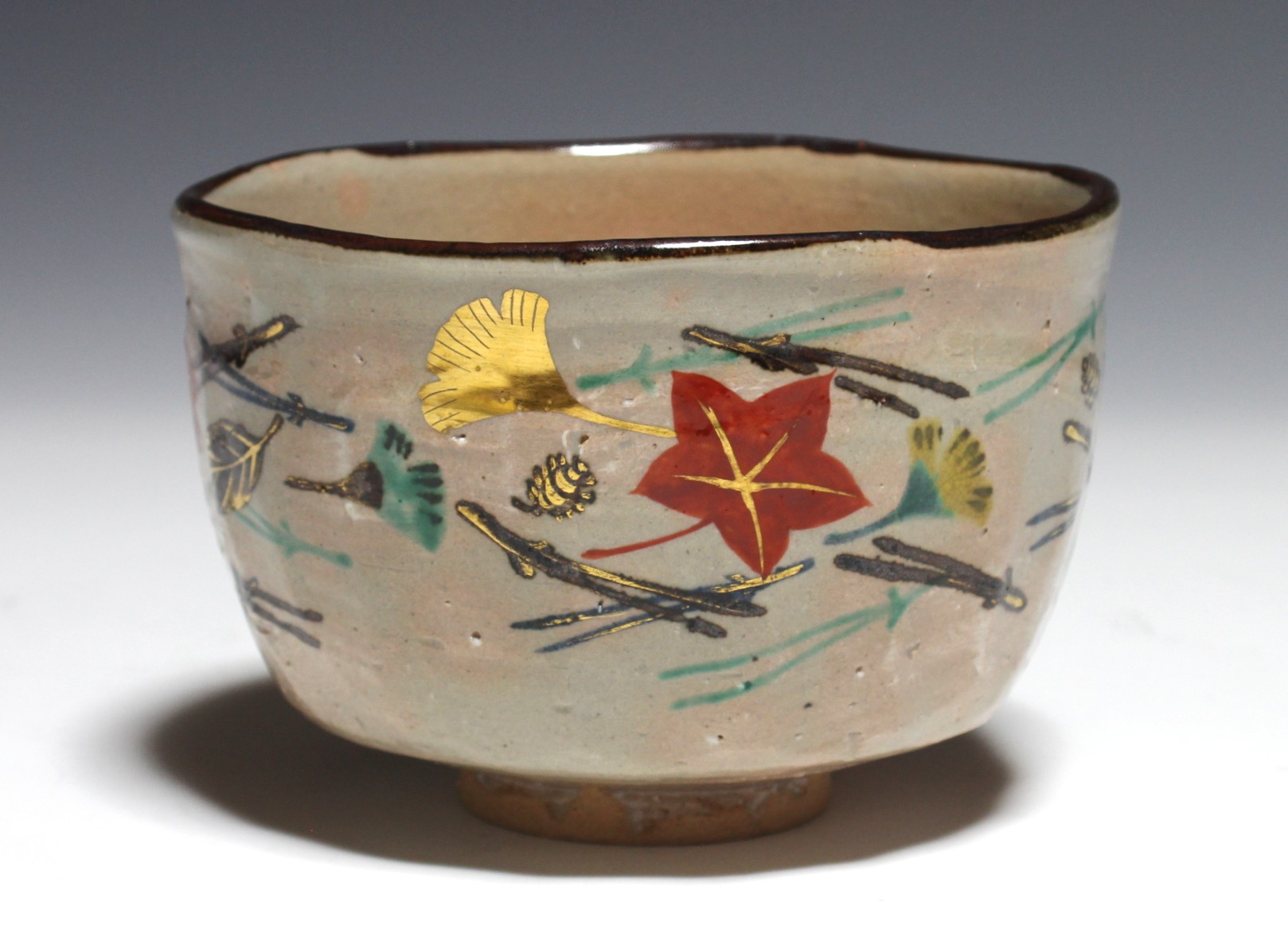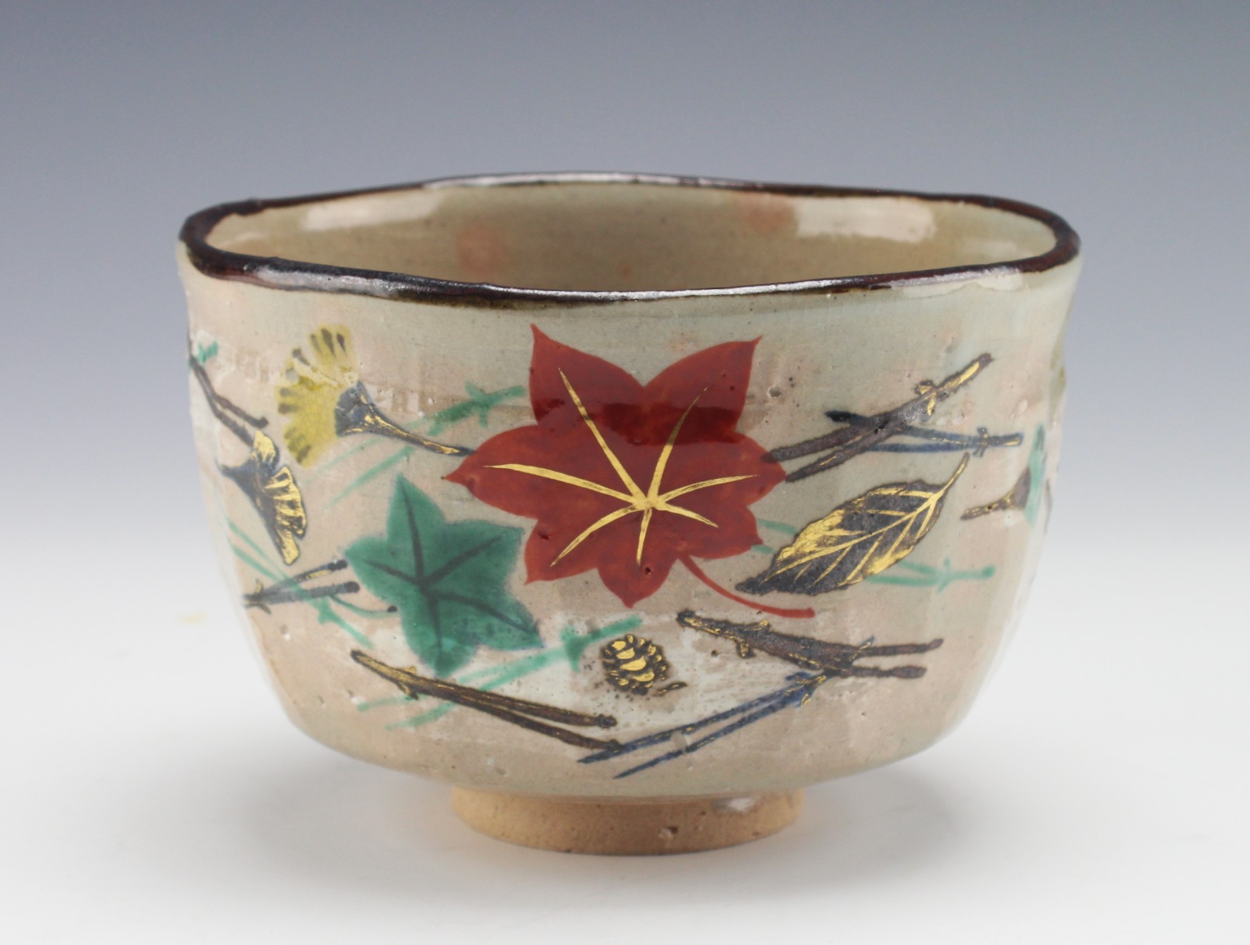 永楽即全 乾山写吹寄茶碗 eiraku, sokuzen kenzan-style fukiyose (scattered leaves) bowl