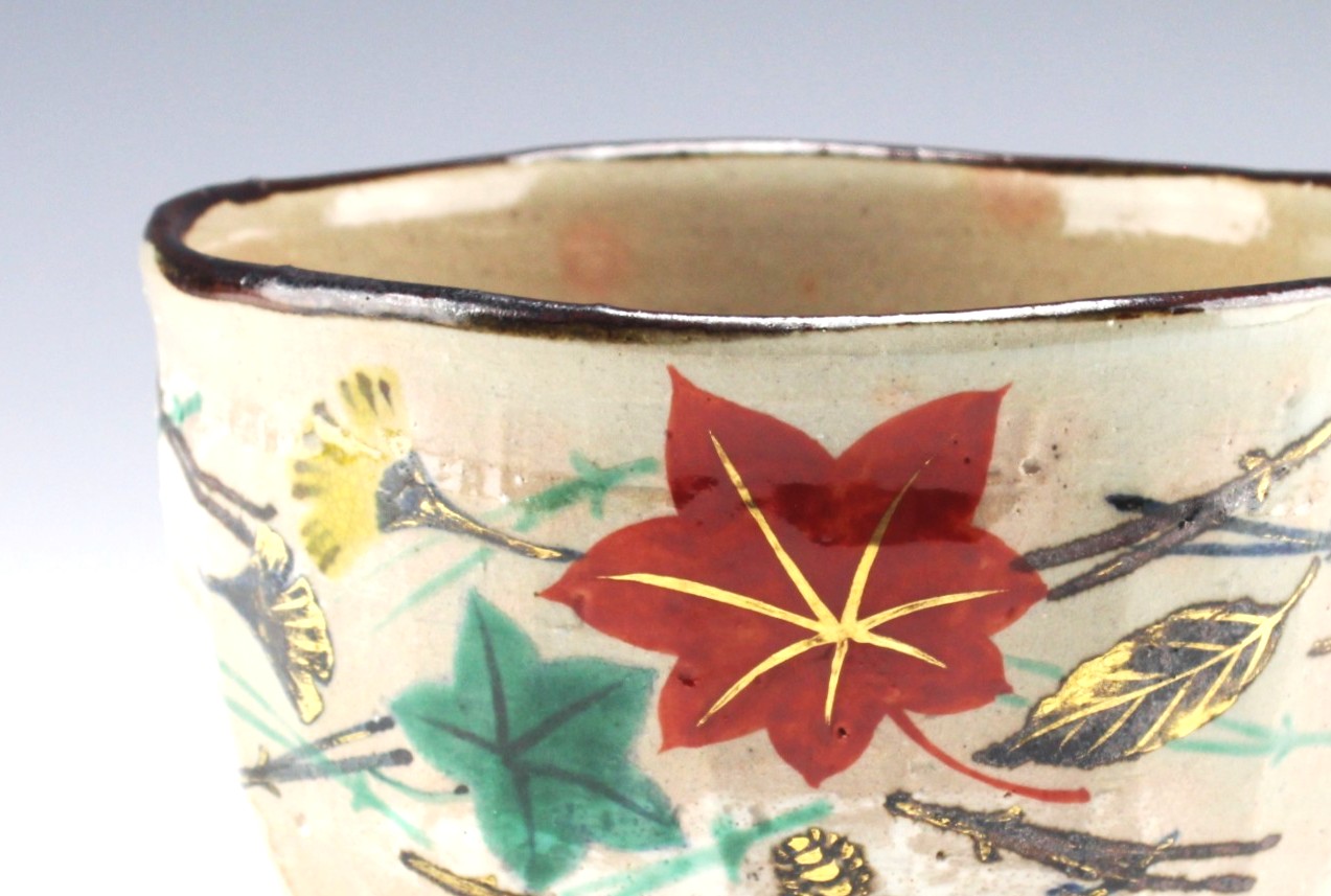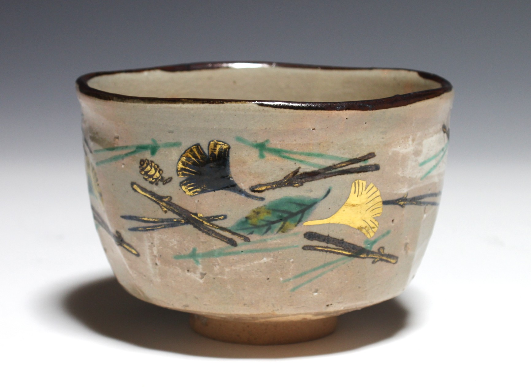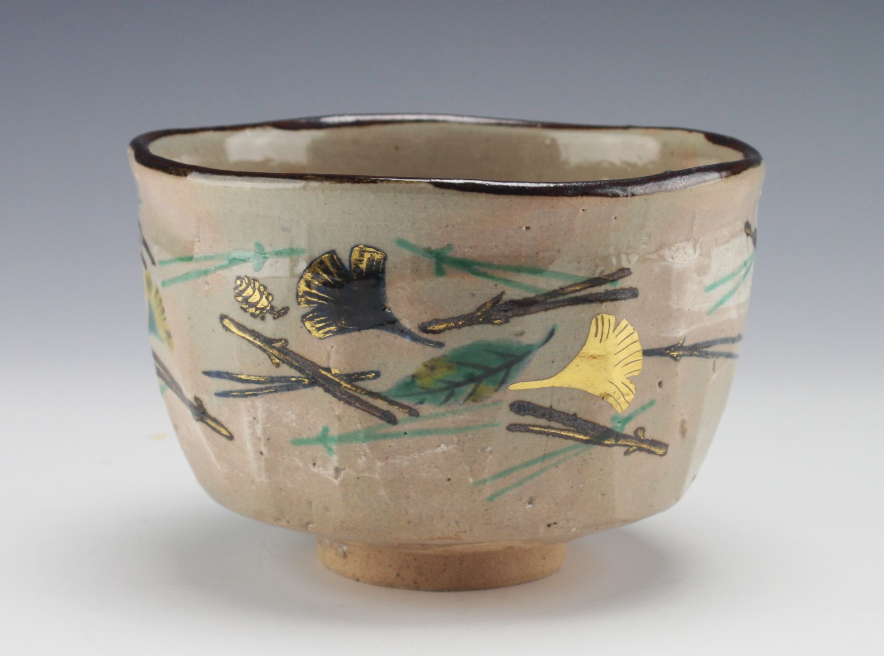 永楽即全 乾山写吹寄茶碗 eiraku, sokuzen kenzan-style fukiyose (scattered leaves) bowl