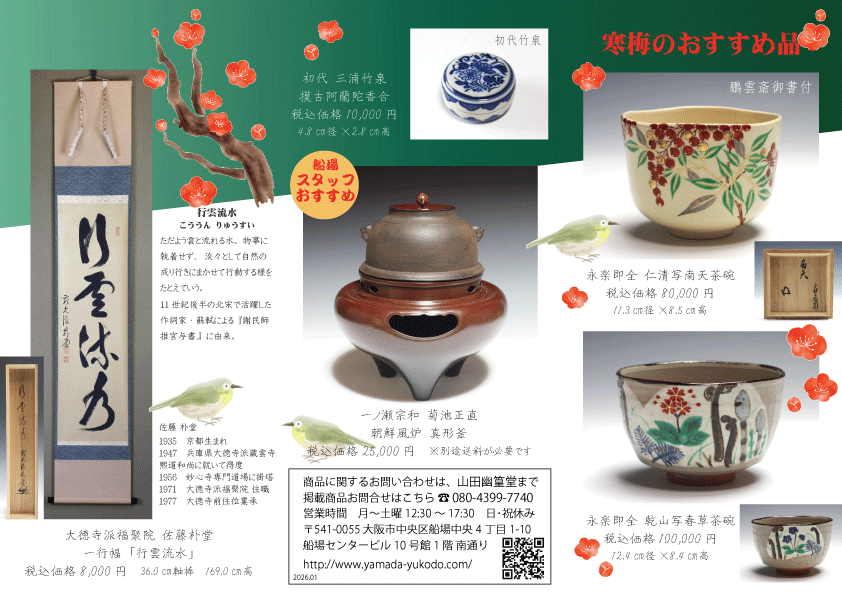 掲載商品は、8月28日(土)・29日(日)の正札会@大阪美術倶楽部に出品予定です。