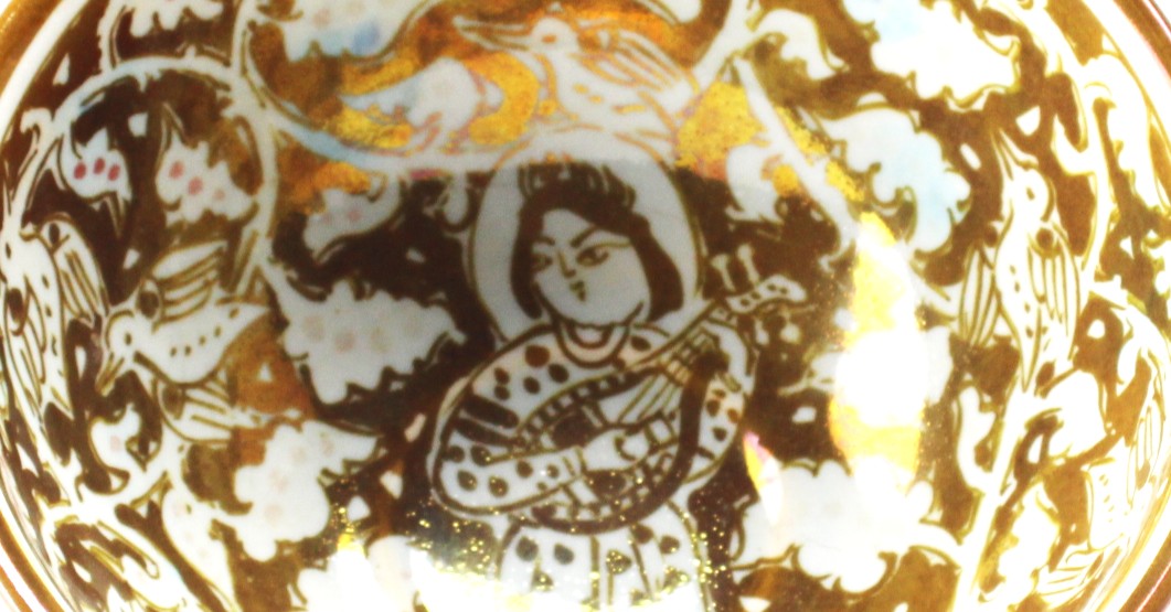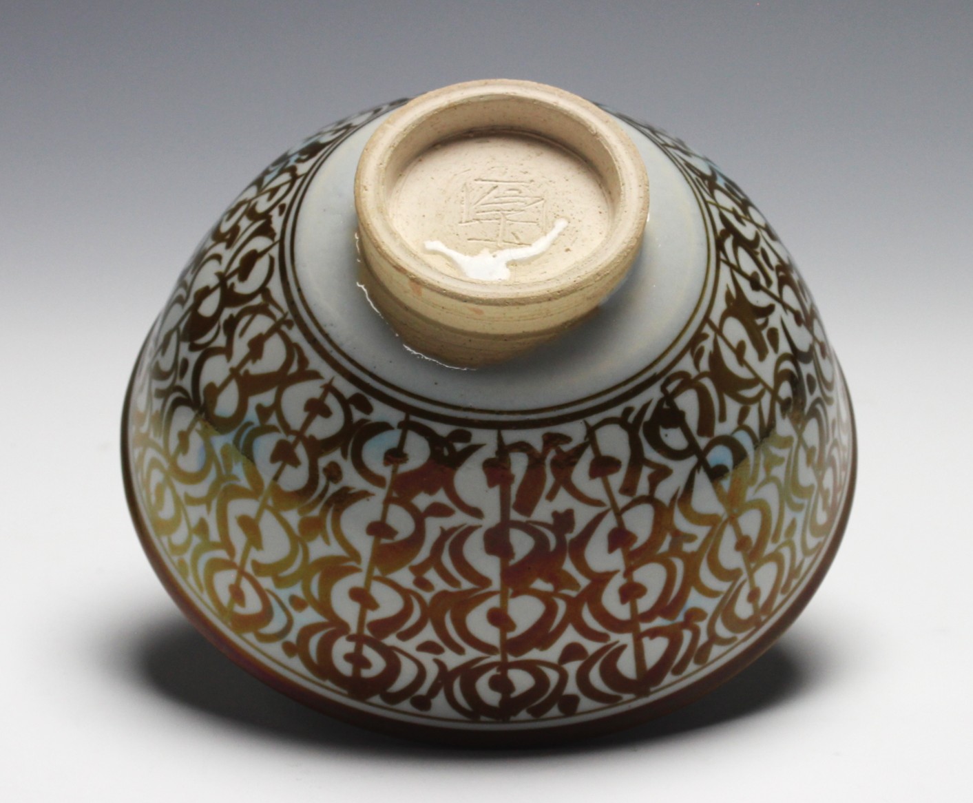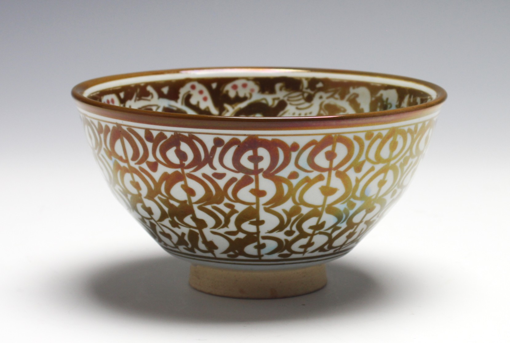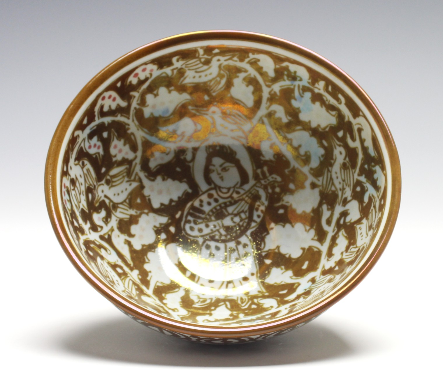 加藤卓男 ラスター彩楽人文茶碗 kato, takuo lusterware bowl with a person pattern