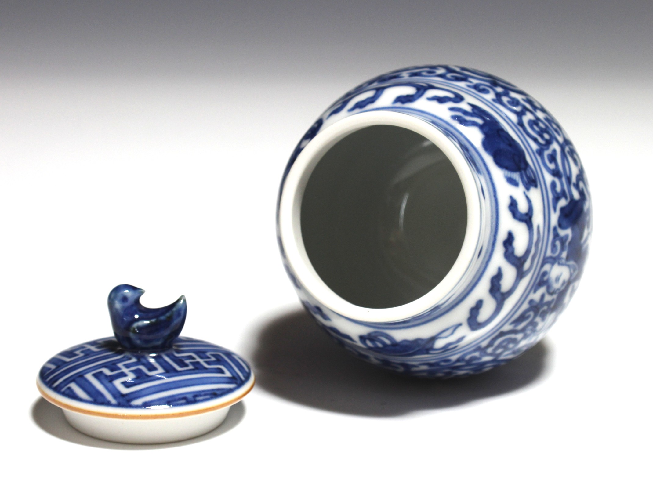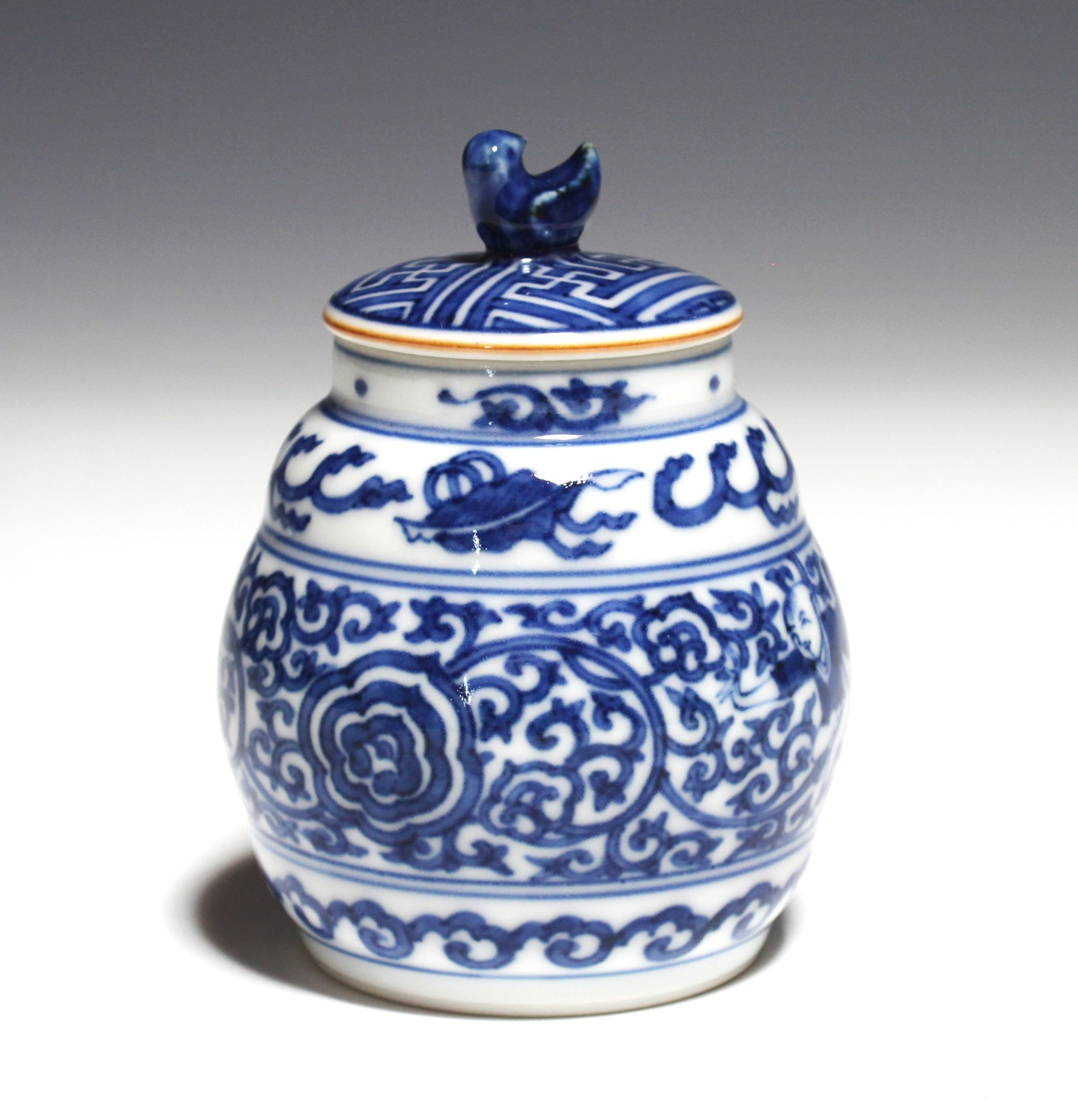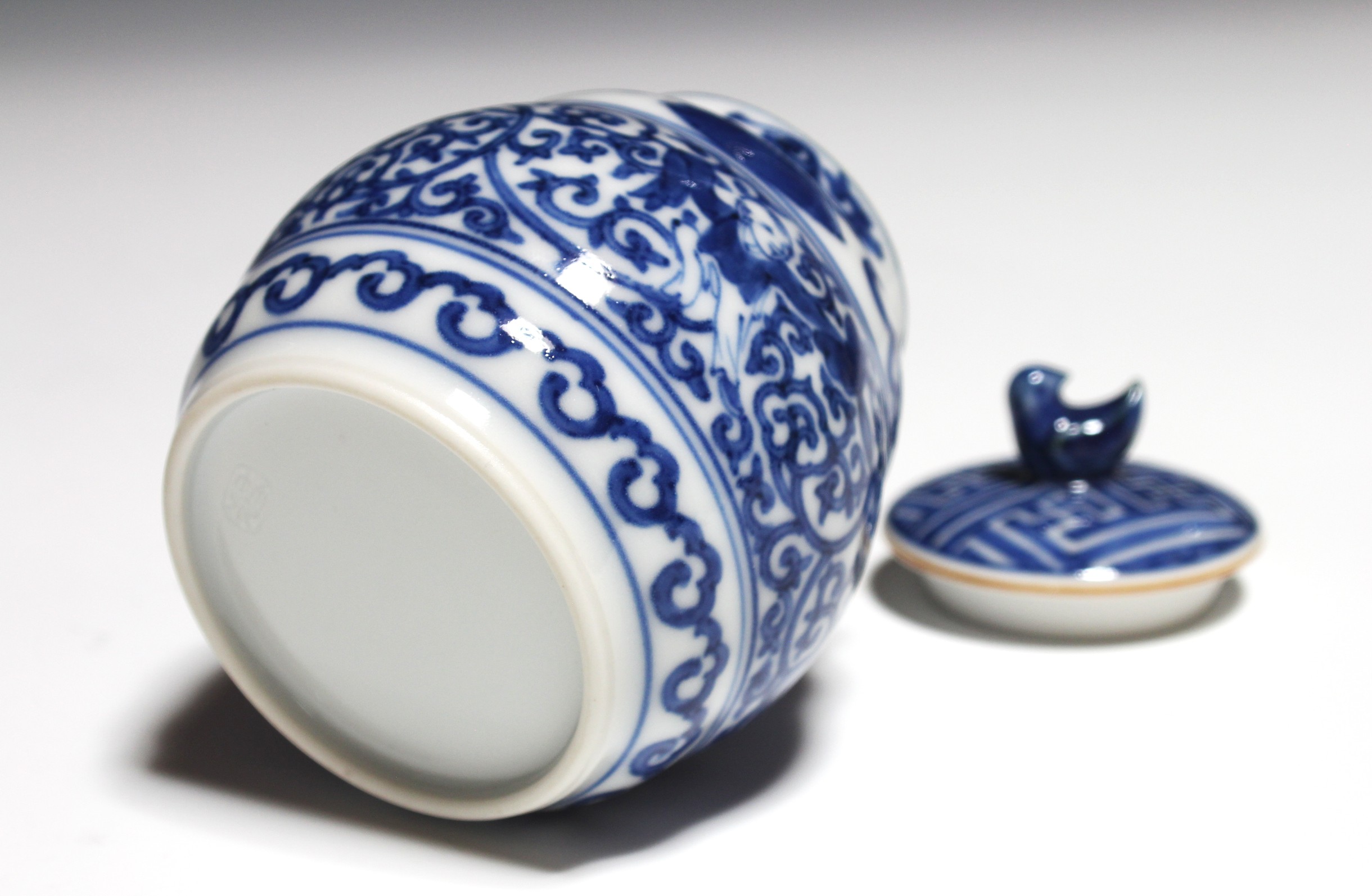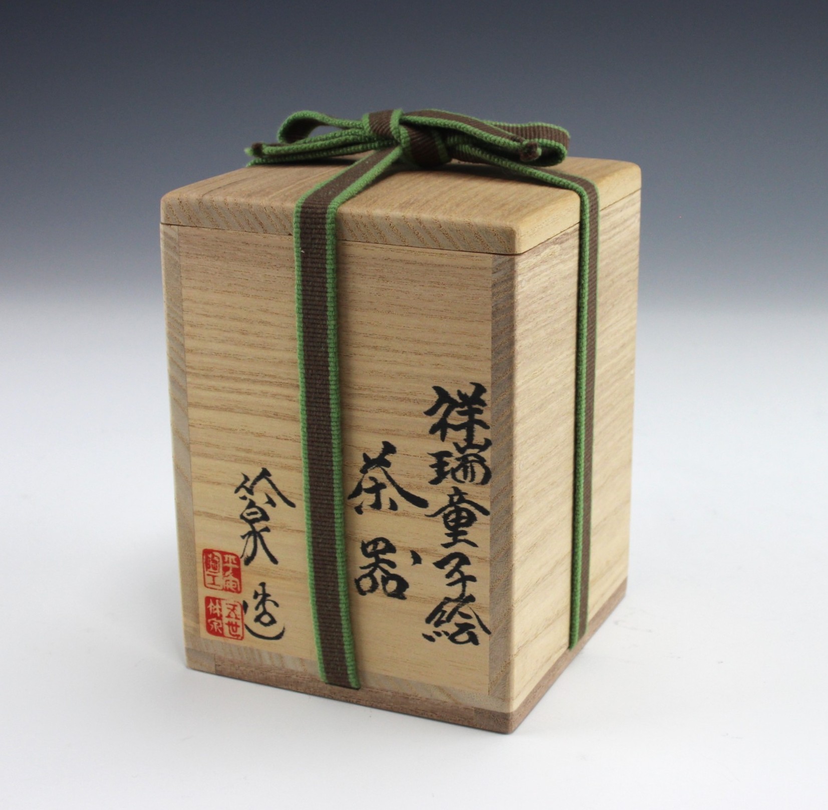 五代 三浦竹泉 祥瑞童子絵茶器 the 5th miura, chikusen shonzui (the best quality sometsuke) tea container with a picture of children