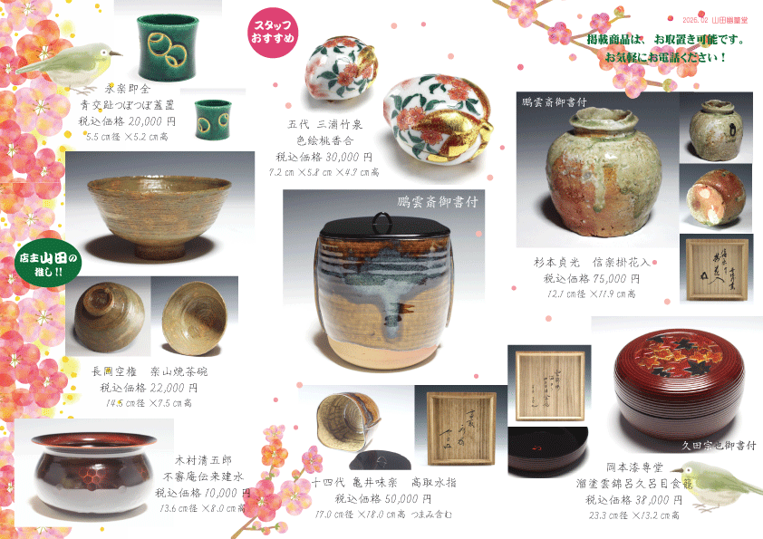 掲載商品は、10月1日(金)・2日(土)・3日(日)の大美アートギャラリー@大阪美術倶楽部に出品予定です。山田幽篁堂ブース:本館2階 A-20